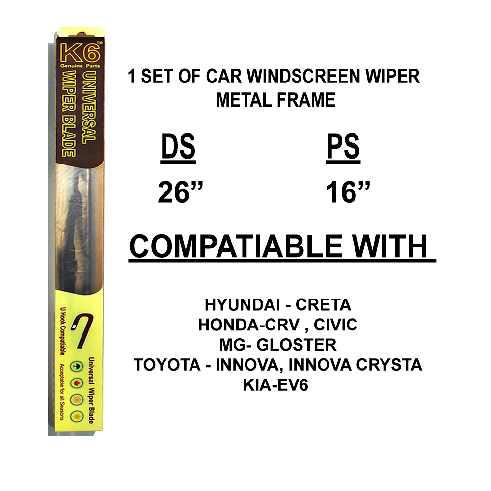 K6 CAR WIPER BLADE 26″ & 16″ METAL FRAME | UNIVERSAL HOOK